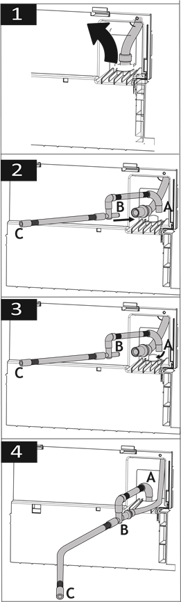 - Fix the C end of the water drain hose to the waste water drain or the sink directly.