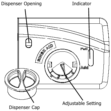 - Add Rinse Aid, if needed (See Rinse Aid).
