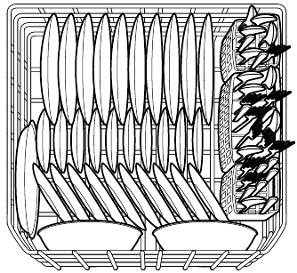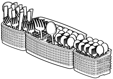 Use suggested loading patterns, as shown, to increase washability of the silverware.