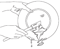 Scrape away large pieces of food, bones, pits, toothpicks, etc. The continuously filtered wash fluid will remove remaining food particles. Burned-on foods should be loosened before loading. Empty liquids from glasses and cups.