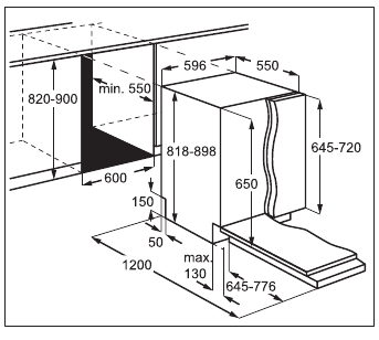 | Dimensions | Width / height / depth (mm) | 596 / 818 - 898 / 550 |