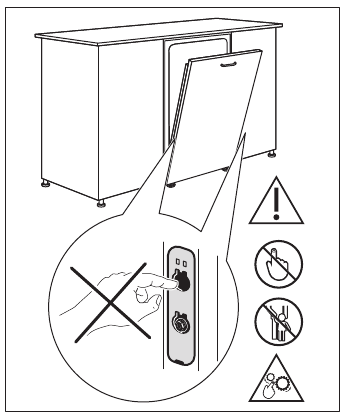 If the furniture panel is not installed, open the appliance door carefully to avoid the risk of injury. After installation, make sure the plastic covers are locked in position. Damage or removal of the plastic covers on the sides of the door may impact the functionality of the appliance and may cause an injury. If the plastic cover is damaged, contact the Authorized Service Centre to replace it with the new one.