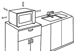 - The oven must be placed on a flat, stable surface. For proper ventilation, a minimum clearance of 3.0 inches (7.5cm) is required between the oven and any adjacent walls and right side must be open. Leave a minimum clearance of 12 inches (30cm) above the oven.