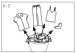 - Items which have been contaminated with inflammable substances such as cooking oil, acetone, alcohol, benzine, petrol, kerosene, spot removers, turpentine, waxes, wax removers or other chemicals. The fumes can cause a fire or explosion. These items must always be washed first by hand in hot water with an extra amount of detergent and then be dried in the open air before drying in the appliance.
