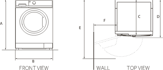 Hinweis: Exact height The exact height of your washer is dependent on how far the feet are extended from the base of the machine. The space where you install your washer needs to be at least 40mm wider and 20mm deeper than its dimensions. |