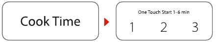 - In waiting state, instant cooking at 100% power level can a be started by select a cooking time from 1 to 6 minutes by pressing number pads 1 to 6.