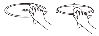 - Never place the glass tray upside down. The glass tray should never be restricted.
