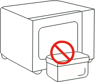 ![]() Glass jars | Always remove lid. Use only to heat food until just warm. Most glass jars are not heat resistant and may break. | ![]() |