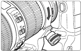 - First attach the Extender to the lens, then attach the lens to the camera. Detach it from the camera in the reverse order. If you attach the lens to the camera first, misoperation may occur.