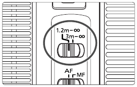 You can set the focusing distance range to 1.2 m/3.9 ft. to infinity or 3 m/9.8 ft. to infinity. By setting the suitable focusing distance range, the actual autofocusing time can be shorter.