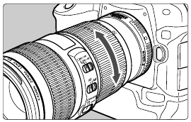 For accurate manual focusing on subjects at infinity distance, look through the viewfinder while rotating the focusing ring.