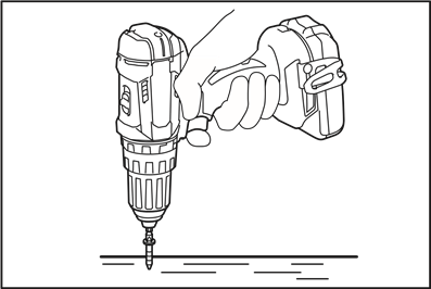 marking. Place the point of the driver bit in the screw head and apply pressure to the tool. Start the tool slowly and then increase the speed gradually. Release the switch trigger as soon as the clutch cuts in.