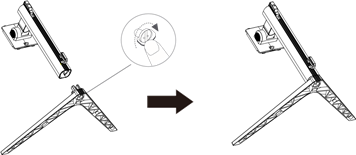 - Install the stand onto the base and fasten it with the thumb screw from the bottom of the base.