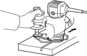 - Be careful of the trimmer bit rotating direction and the feed direction.