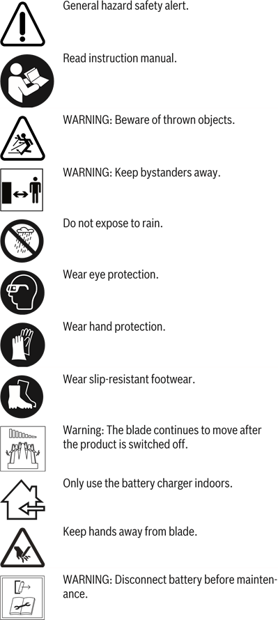 - Before any work on the garden product itself (e. g. maintenance, tool change, etc.) as well as during transport and storage, remove the battery from the garden product. There is danger of injury when unintentionally actuating the On/Off switch.
