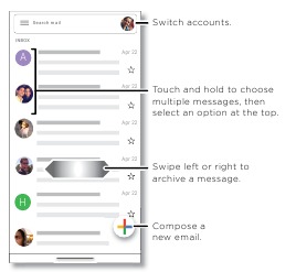 Settings > Accounts. - To set up email accounts, see Gmail.