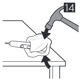 - Hold the top of the handle with one hand and strike the handle housing 0.5 inch above the bottom end. Strike firmly with a hammer on all 4 sides to eject the end cap (Fig. 14).