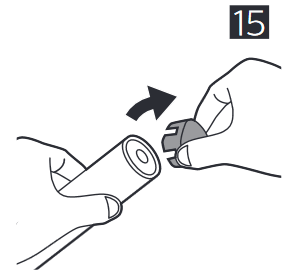 Note: You may have to hit on the end several times to break the internal snap connections. - Remove the end cap from the toothbrush handle. If the end cap does not release easily from the housing, repeat step 3 until the end cap is released (Fig. 15).