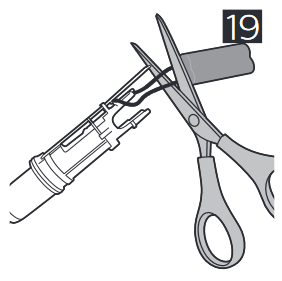 - Cut the battery wires from the circuit board close to the battery (Fig. 19).