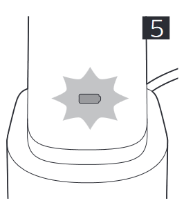 - The light of the battery level indicator flashes and the appliance beeps twice. This indicates that the toothbrush is charging (Fig. 5).
