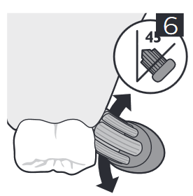 - Place the toothbrush bristles against the teeth at a slight angle (45 degrees), pressing firmly to make the bristles reach the gumline or slightly beneath the gumline (Fig. 7).