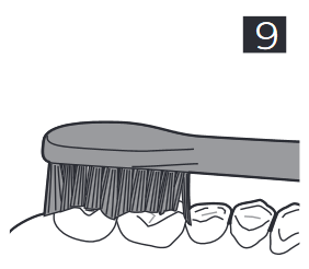 - After you have completed the brushing cycle, you can spend additional time brushing the chewing surfaces of your teeth and areas where staining occurs. You can also brush your tongue, with the toothbrush turned on or off, as you prefer (Fig. 9).