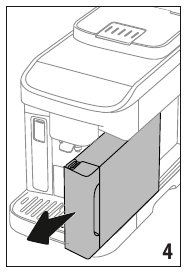 To ensure the performance of the machine remains constant over time, a message will suggest you install a De'Longhi water softener filter (D4). Proceed as follows to install the filter straight away, or alternatively, press "