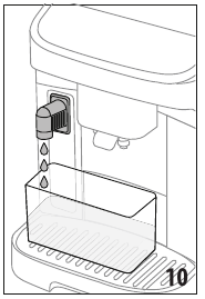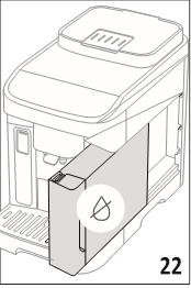 | Time to fill the water tank with fresh water. | Insufficient water in the tank | Remove the tank (A9) (fig. 4), fill with fresh drinking water up to the MAX level (fig. 5), and return it to the machine |