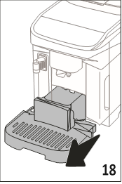 When removing the drip tray, the coffee grounds container must always be emptied, even if it has not filled up noticeably. If this is not done, it can happen that when further coffees are prepared, the grounds container will fill up more than expected and clog the machine.