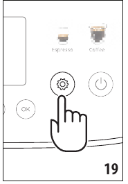 The machine will prompt for descaling to be carried out after a predetermined period of time, depending on the water hardness. The machine can also be programmed according to the actual hardness of the local water supply, so that descaling is required less frequently. Accordingly, it is advisable to set the correct value without delay, following the machine's step by step guide. Proceed as follows: