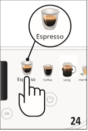 | Sorry, I am unable to complete your drink. Please reduce the intensity and try again | The beans are too finely ground, so that the coffee is delivered too slowly or not at all. | Press OK (B3) to go back to the homepage. Repeat the preparation, selecting a lower intensity setting from the customizations menu (see Coffee-based drinks ). |