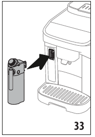 | Can you insert the LatteCrema Hot carafe? | Milk carafe (E) not positioned correctly, or missing. | Position the milk carafe and push fully home: the machine emits a beep (if the beep function is enabled). |