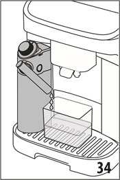| Remember to store the milk carafe in the fridge | A milk-based drink has been prepared and the milk carafe (E) is still on the machine | Remove the milk carafe and put it in the refrigerator |