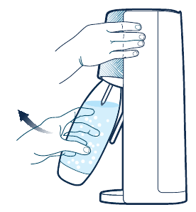 Do not remove plastic carbonating bottle until after hearing the sound of excess CO2 being released. Never force the plastic carbonating bottle out of the Snap-Lock system. Always allow the Sparkling Water Maker to release the plastic carbonating bottle. If the plastic carbonating bottle does not immediately release from the Snap-Lock system wait a few moments. If it still does not release, then push the plastic carbonating bottle back into the vertical position and gently pull it towards you again. Attempting to remove the plastic carbonating bottle while it is still pressurized can cause uncontrolled ejection of the plastic carbonating bottle and may result in serious injury.