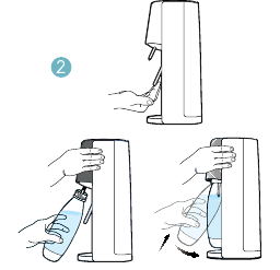 Never use a Sparkling Water Maker with a broken carbonating tube. This can cause excessive pressure, bottle failure and serious injury. Insert the bottle neck into the Snap-Lock system. Push the plastic carbonating bottle up and back. The Snap-Lock will hold the plastic carbonating bottle.