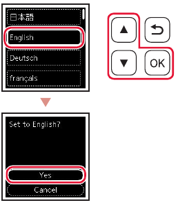 and OK buttons to select a language