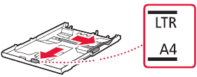 - Slide the right paper guide to the right edge. Align the front paper guide with the Letter or A4 mark.
