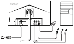 - Connect the signal cable to the DP (optional) and/or HDMI (optional) input socket of the monitor, and the DP (optional) and/or HDMI (optional) output socket of the graphics card on the computer. Then tighten the thumbscrews on the signal cable connector.