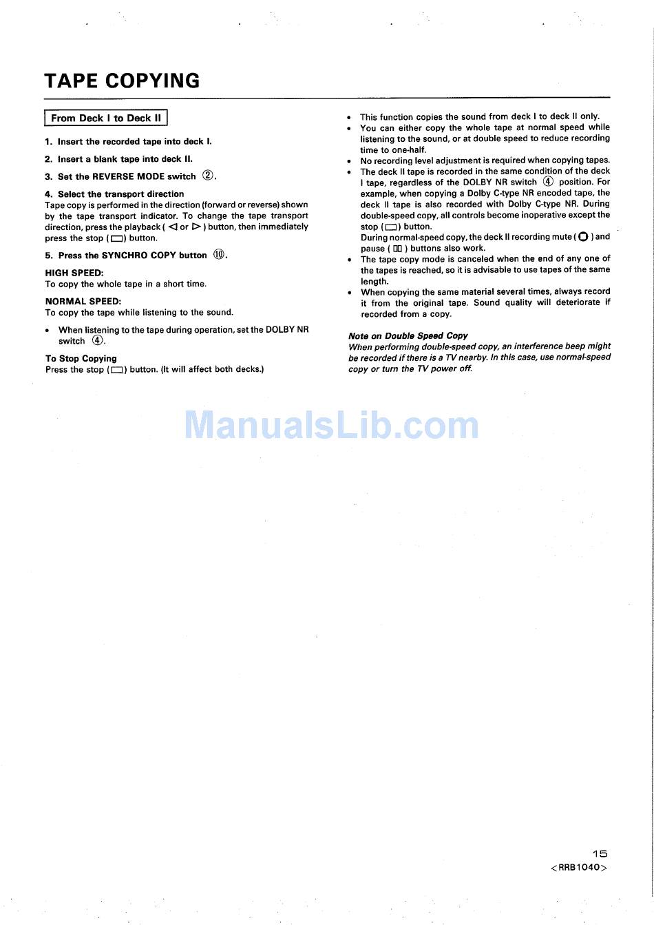 RX-1180 Tape Copying