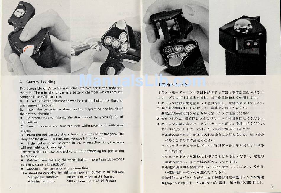 Battery Loading - Canon Motor Drive Mf Instruction Manual