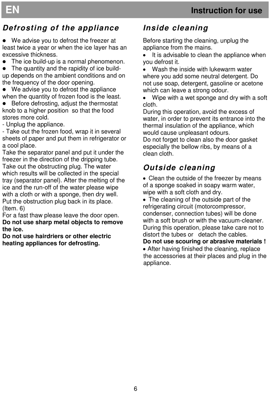 Do not use scouring or abrasive materials !