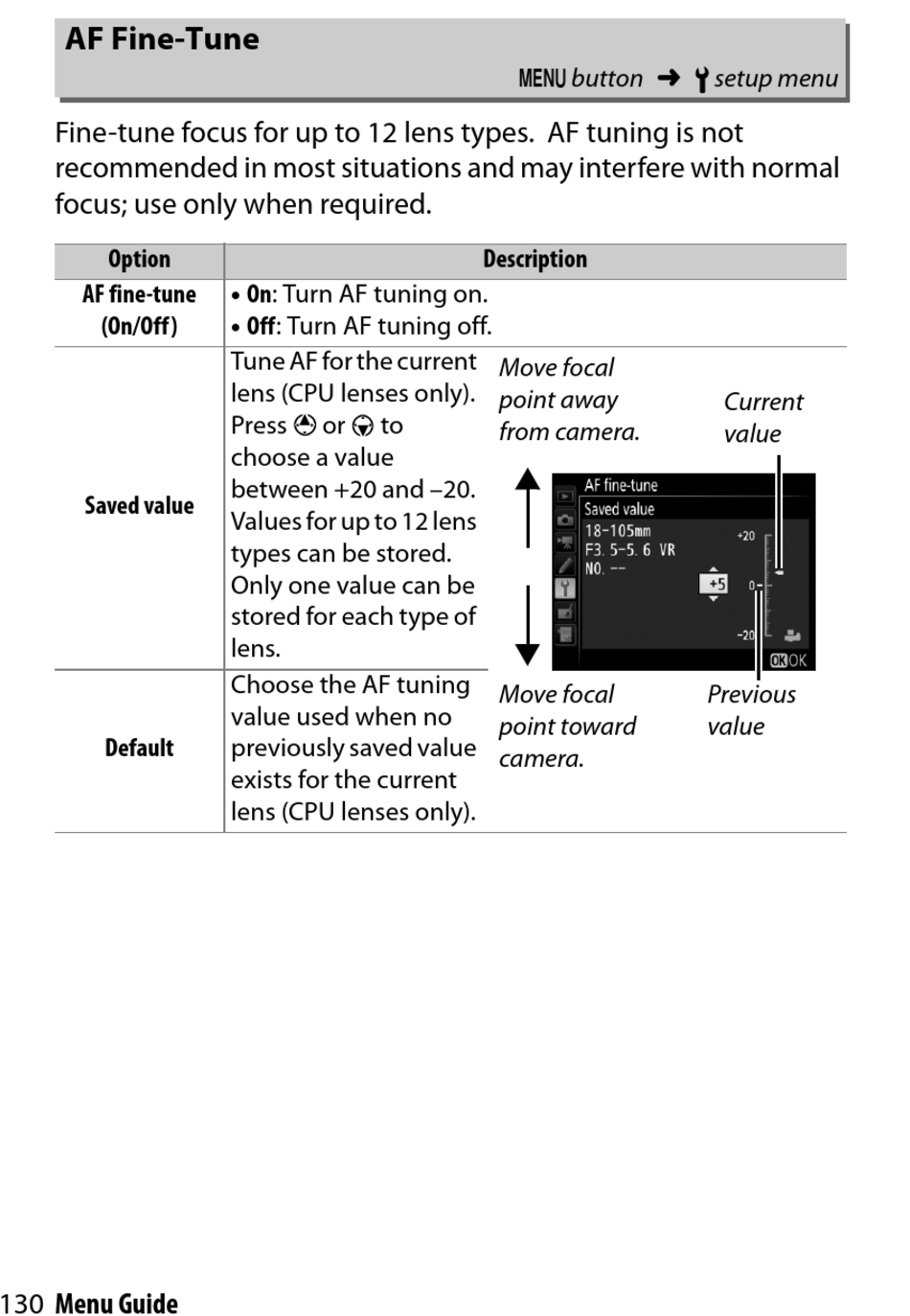 Fine-tune focus for up to 12 lens types. AF tuning is not