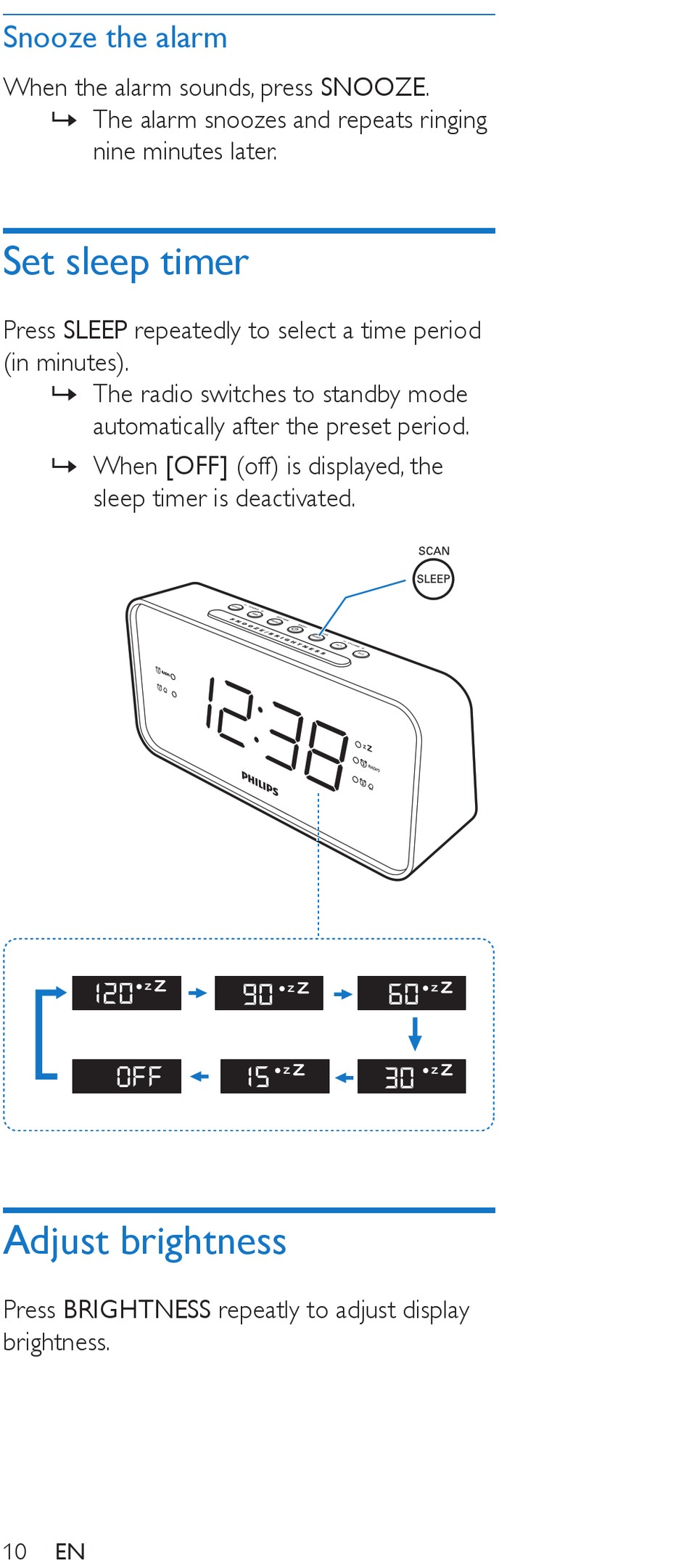 Press SLEEP repeatedly to select a time period