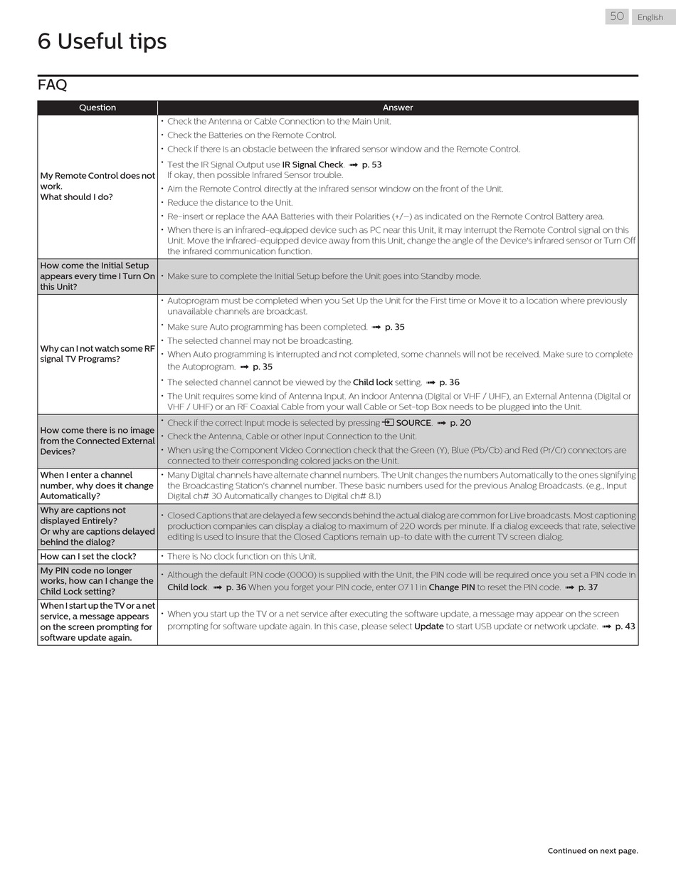 Child lock. L p. 36 When you forget your PIN code, enter 07 1 1 in Change PIN to reset the PIN code. L p. 37