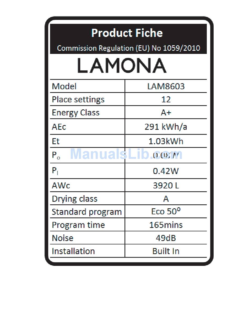 Dishwasher Lamona Lam8303 Installation Instructions Manual
