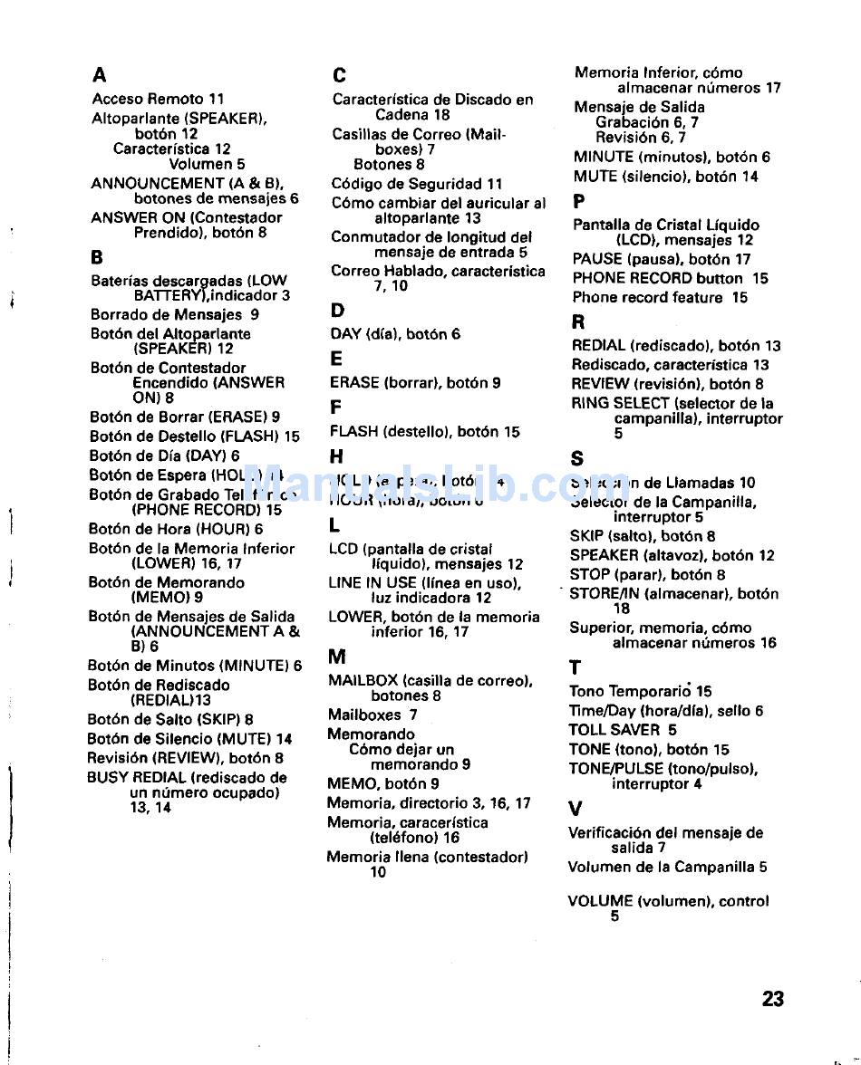 Digital answering system (with english or spanish voice prompts) (52 pages)