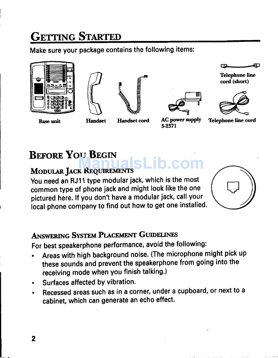 Getting Started; Before You Begin; Modular Jack Requirements; Answering System Placement Guidelines - Ge 2-9985 Proseries User Guide