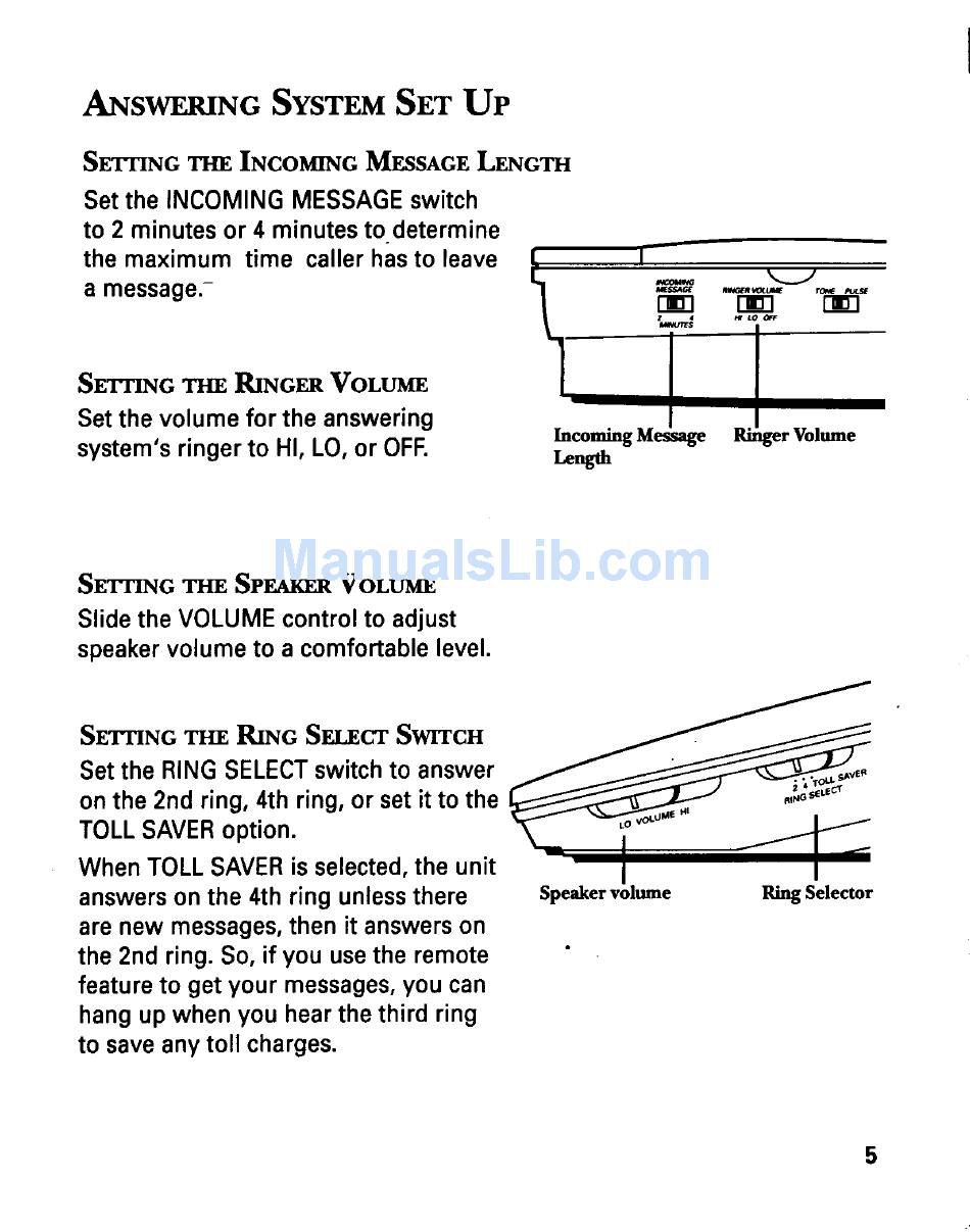 Answering System Set Up; Setting The Incoming Message Length; Setting The Ringer Volume; Setting The Speaker Volume - Ge 2-9985 Proseries User Guide