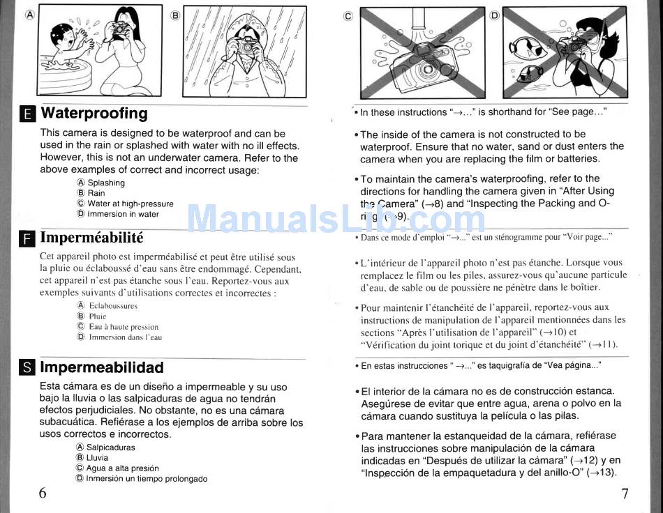 Waterproofing - Canon Sure Shot Wp-1 Instructions Manual