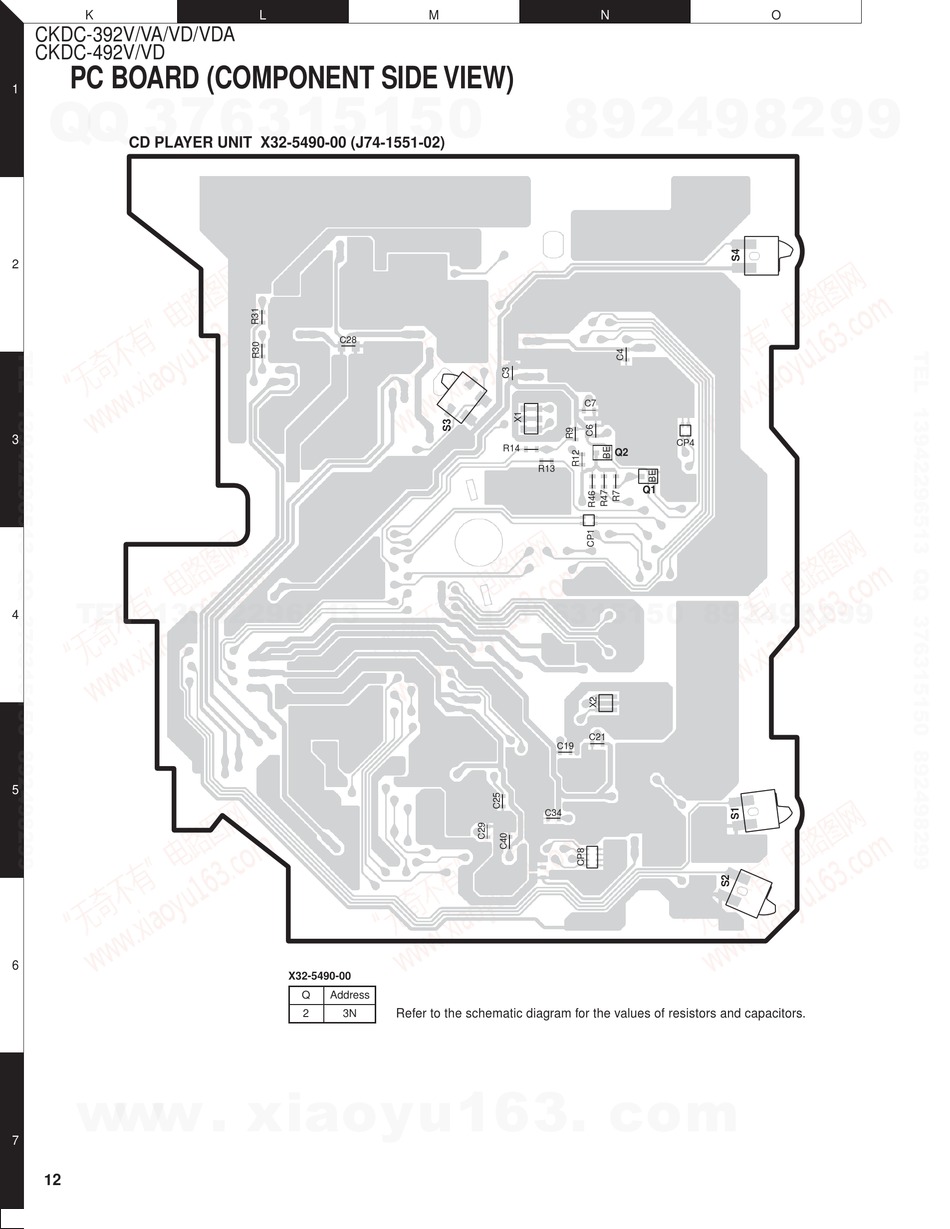 Refer to the schematic diagram for the values of resistors and capacitors.
